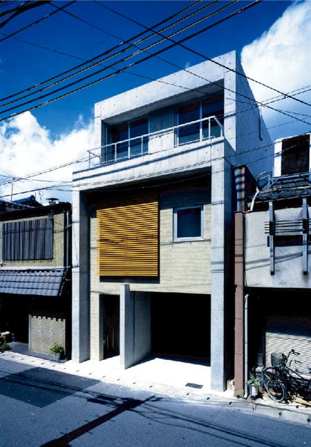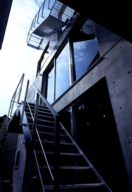 事務所としての機能する1Fと住宅部分の2F以上の生活空間を分けるため、外階段を上がった2Fが玄関になる。見晴らしのいい屋上へも外階段を利用する。