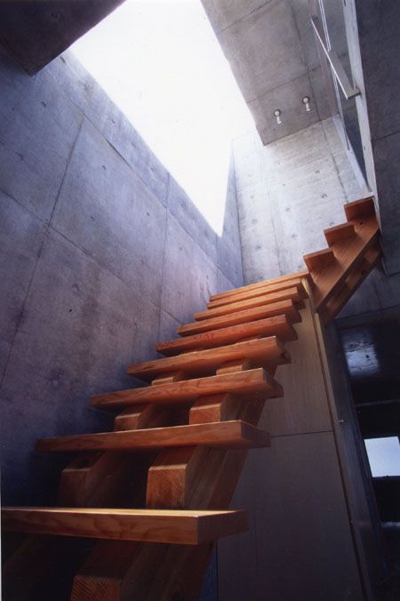 3Fへの階段は素朴で力強いパイン材で。天窓からの光で十分な明るさを保っている。