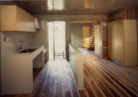 昔ながらの゛おくどさん″にインスパイアされたシンプルなキッチン使い手本意でアレンジ自在の汎用性が魅力だ。杉の足場板を用いたリビングや玄関兼土間は飼い犬も自由に走り回れる開放感が心地良い。