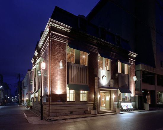 大正時代の洋館をリノベーションした大掛かりなプロジェクト。室町の繊維不況で古くからの建物が姿を消しマンションや駐車場に変わり、街の景色が画一的になっていくことを危惧し、2000年より残したい物件ピックアップから始まった。保存という消極的な残し方ではなく、新しい京都の文化を発信し続け、ビジネスとしても収益をあげられる方法を模索し、実行する積極的なプロジェクトである。現行の消防法をクリアしつつ可能な限り、寺院建築ばりに高い天井や太い梁などを見せられるよう設計した。古い木造階段をそのまま利用し、回遊性を持たせるよう新たな階段も設け、日本がハイカラな文化に目覚めた頃の匂いをゆったり感じながら、ショッピングや食事など楽しめるようリラックスとデラックスという相反する要素を掛け合わせた。