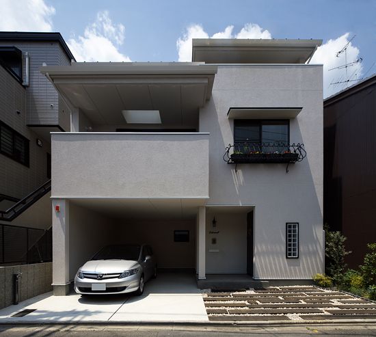 京都市内の3階建て長期優良住宅です。京都市内の場合、景観条例をクリアーするために様々な検討をしております。特に今回は外壁の色やテクスチャーを決めるのに苦労しましたが とても雰囲気の良い外観に仕上げることが出来ました。